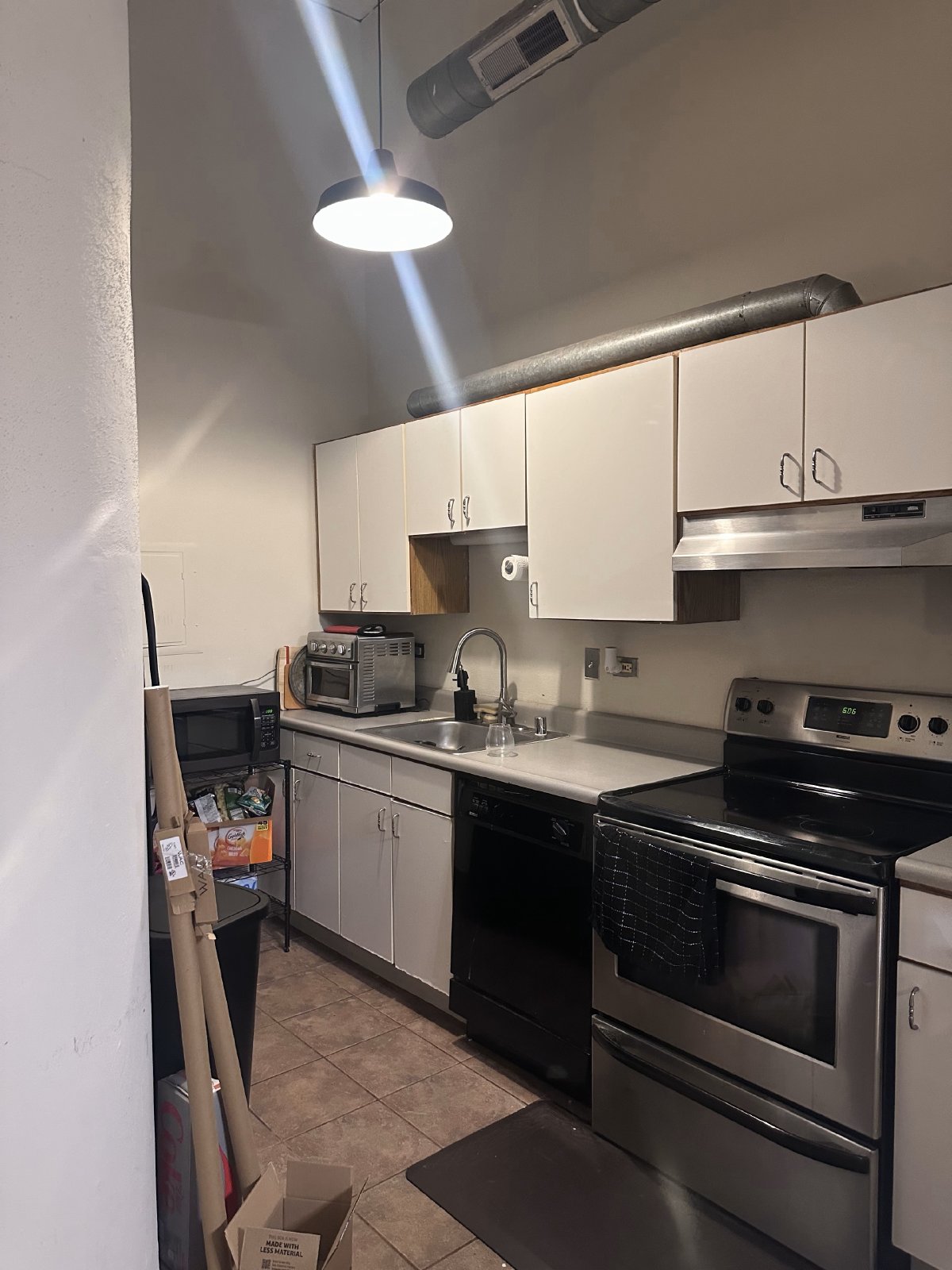 The condominium unit has approximately 750 square feet and contains 1 bedroom / 1 bath, plus loft space. The unit features great natural lighting, loft bedroom/storage, kitchen with oven/range/hood, refrigerator, dishwasher, and microwave, laminate hardwood floors, central HVAC, exposed brick walls, high ceilings and huge windows with east view. Room dimensions are: Living Room 24'7' X 12', Bedroom 10' X 12', and Dining Room 8'8' X 10'9'.